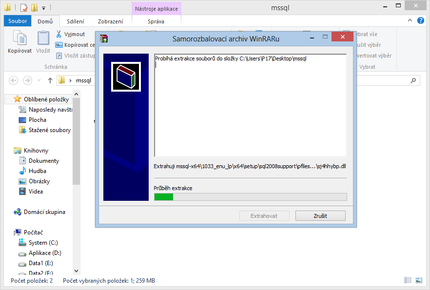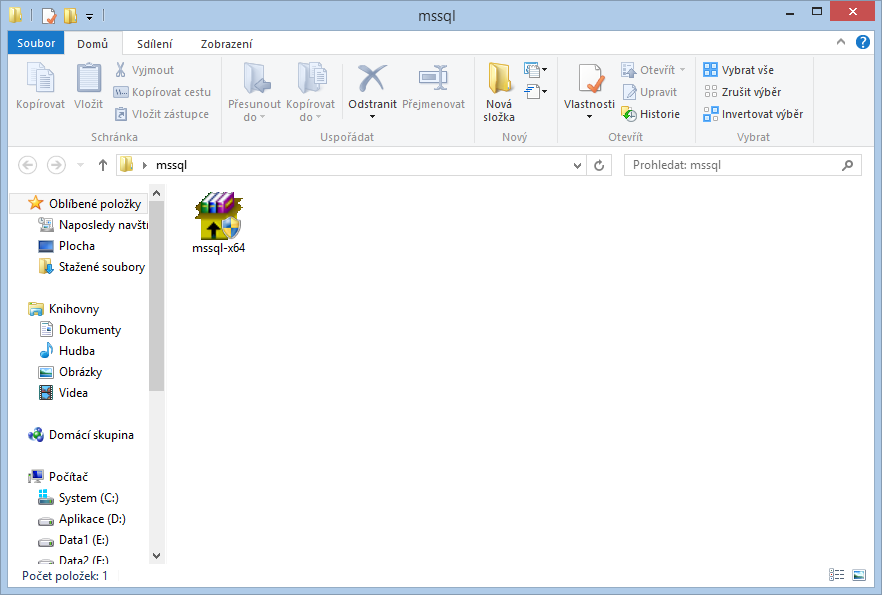 2. Stažený soubor nakopírujete do libovolné prázdné složky na disku. Například složka „mssql“ uložená na ploše.