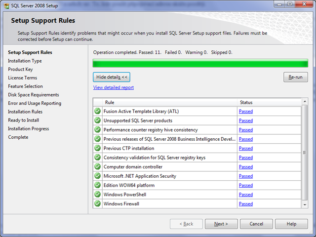 6. Při instalaci nejprve proběhne kontrola, zda systém splňuje minimální požadavky (hardware i software). Následně proběhne zdlouhavá instalace instalačních souborů a druhá kontrola, kde je nainstalováno vše co bude potřeba:
